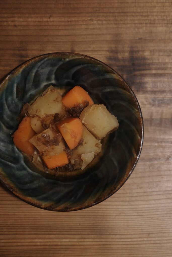 時雨出版からでている古谷暢康さん監修の「最初に読む料理本」から、肉なし肉じゃが。調理もとてもシンプルで、こんなに素朴で美味しいんだと感動した一品。いわゆるレシピ本ではないこの本は、料理の仕方というか、考え方?を見直せる本。とてもいいので、この本についてまた書きたいと思います。