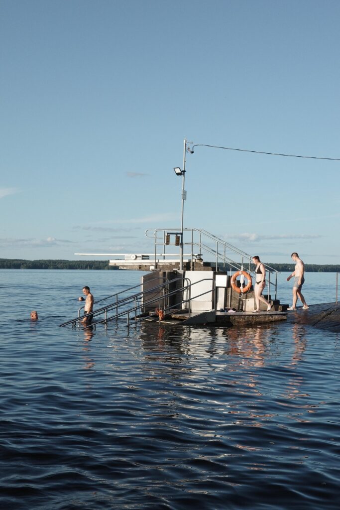 サウナで温まった後は大自然の水風呂、湖へ。これがもう、言うまでもなく最高すぎる!!!