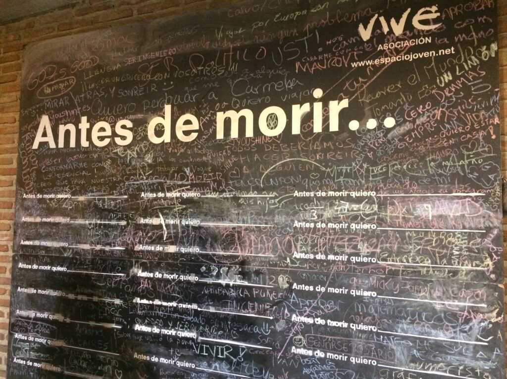 もともと英語で知ってた言葉だったけど、実物を初めて見たのがスペイン語だったので、頭の中に残っているのは英語ではなくスペイン語の Antes de morir quiero 。大袈裟かもしれないけど、迷った時、大きな決断をするときはいつもこの言葉を思い出して判断してる。