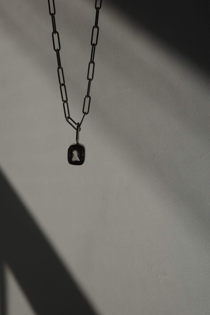 買ったネックレスはデザインはシンプルだけどアメジストの存在感があって、チェーン部分も一見大振りに見えるけど、パーツの一つ一つがどっしりしていないので、そのバランスがちょうどよい。存在感はしっかりあるのに、抜け感もあってかろやかにつけれる感じ。
